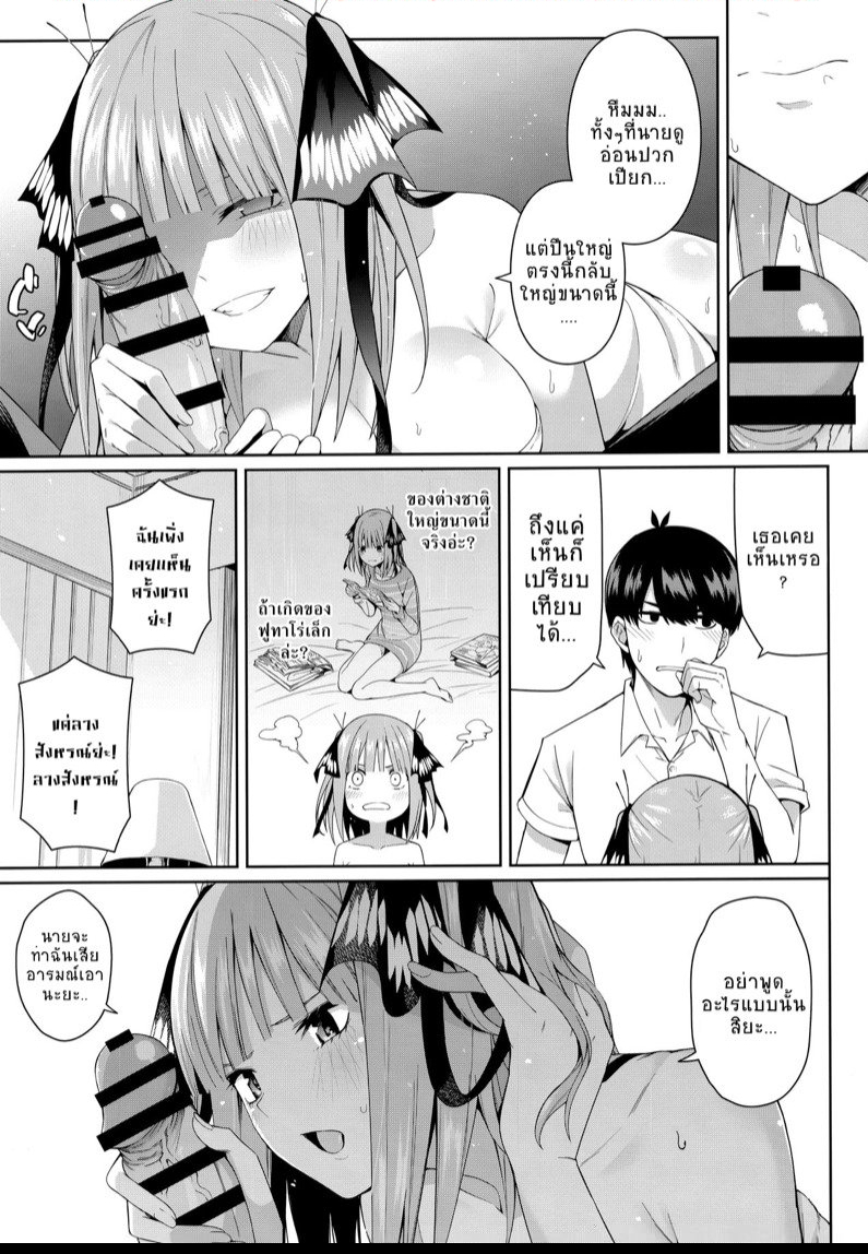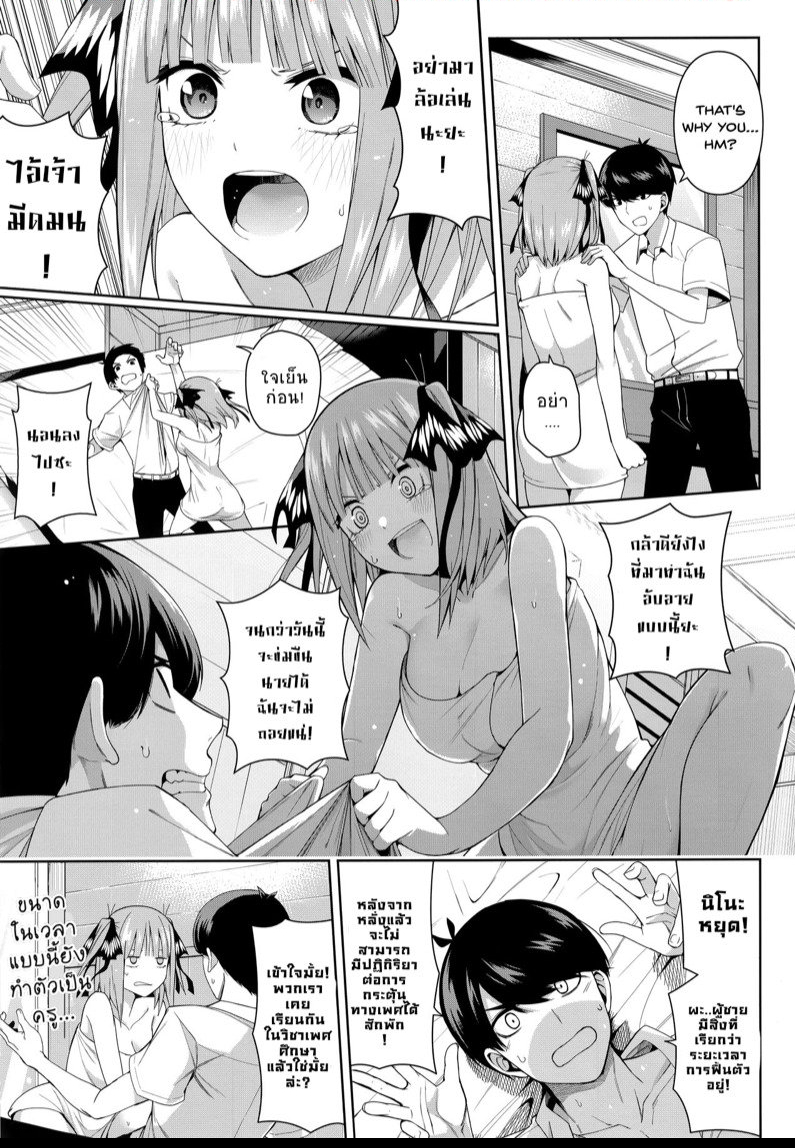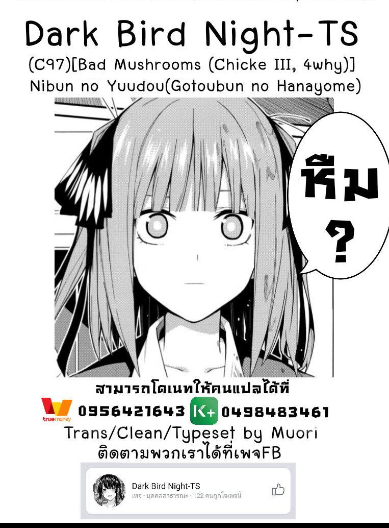 ถ้าไม่สบายใจ เดี๋ยวไปม่านรูด - (C97) [Bad Mushrooms (Chicke III, 4why)] Nibun no Yuudou | Half Seduction (Gotoubun no Hanayome)