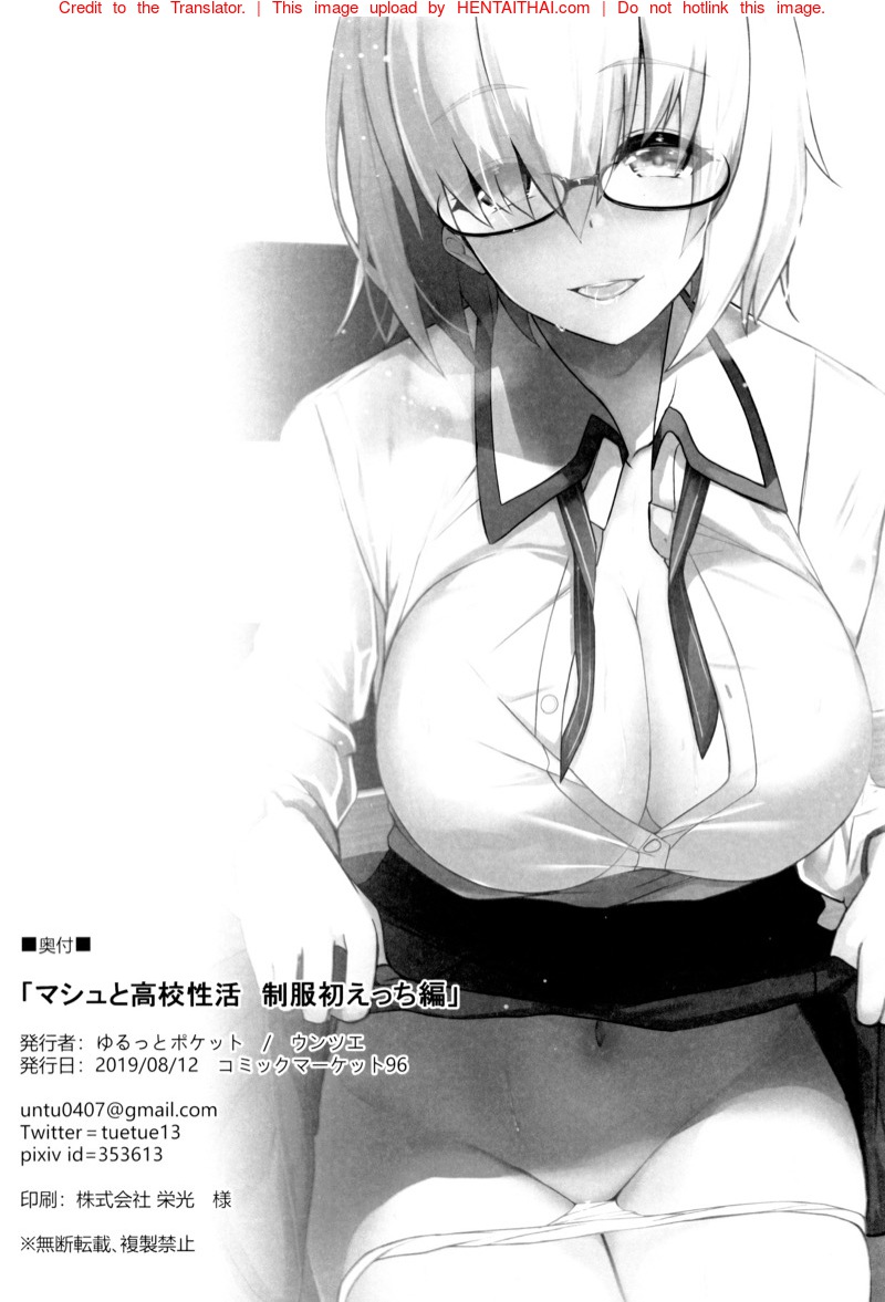 อ่านโดจิน ชีวิตประจำวันสุดลามกกับมาชู - (C96) [Yurutto Pocket (Untue)] Mash to Koukou Seikatsu Seifuku Hatsu Ecchi Hen | Having a Lewd Highschool Life With Mash (Fate/Grand Order)