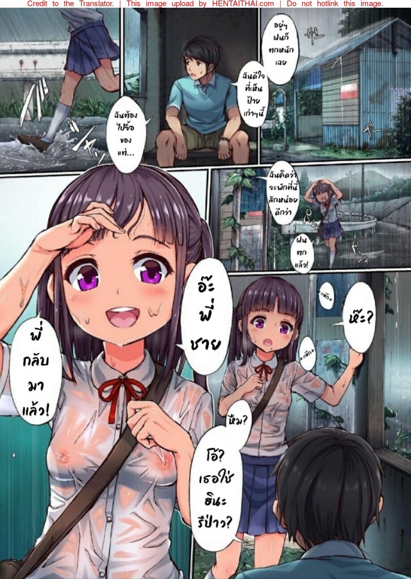 อ่านโดจิน น้องสาวที่เปียกปอน - [Nijitsuya Kenkyuujo (Toranoko, Oki Ami)] Inaka Shoujo to Asobou ~Nuresuke Amayadori Hen~ | Let's Play with a Country Girl: Wet and See-Through Rain Shelter Edition