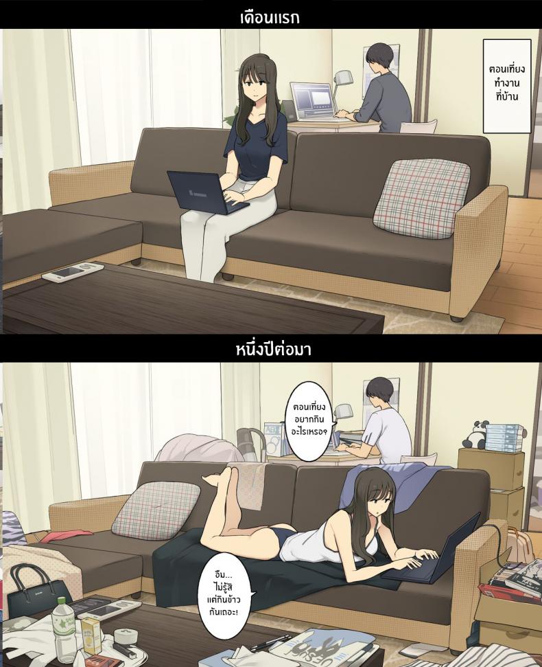 อ่านโดจิน 1 เดือน vs 1 ปี ของคู่รัก [Wakamatsu] Dousei Seikatsu Ikkagetsume to Ichinen Ato, Asaokite kara Shuushin made no Hikaku A Day in the Life of a Couple_ Their First Month Living Together vs One Year Later