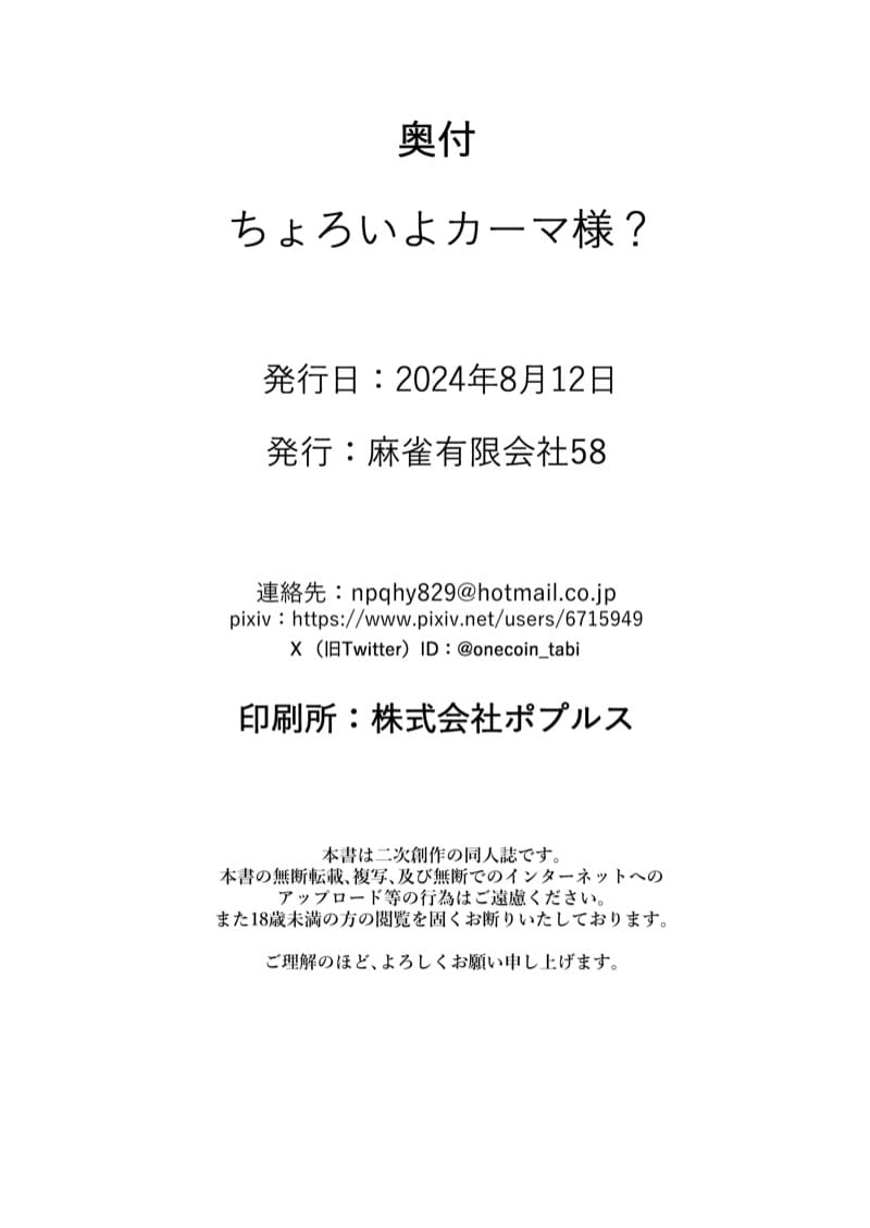 รางวัลตอบแทนสำหรับกามะ | H-Doujin [Mahjong Yugen Co. Ltd 58 (Tabigarasu)] Choroi yo Kama-sama?